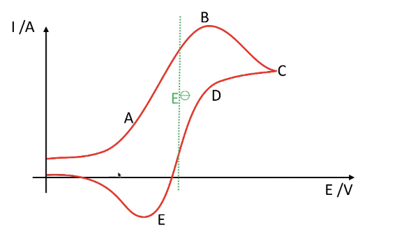 is far from the equilibrium of the species. - The shape of the voltamogram can be predicted using the Nernst Equation: