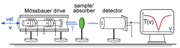 - Energy modulation is achieved by moving the source relative to the absorber, causing Doppler shifts in photon energy: