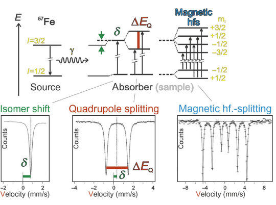 - Isomer shift occurs due to changes in the nuclear environment, typically relative to a reference (metallic iron).