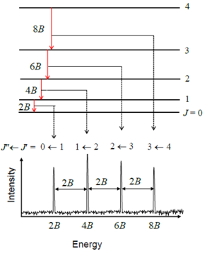 where is the rotational quantum number and is the rotational constant in wavenumbers. - Selection Rule: For microwave spectroscopy, the rotational transitions follow